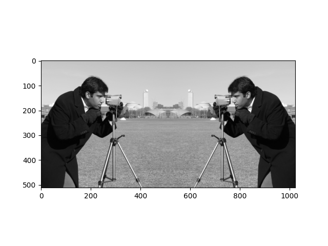 You can do this in one line of code by using a combination of np.concat(), np.flip() and plt.imshow(). Notably,np.concat() will “stick” (concatenate) arrays together, rather than np.repeat()-ing the values…