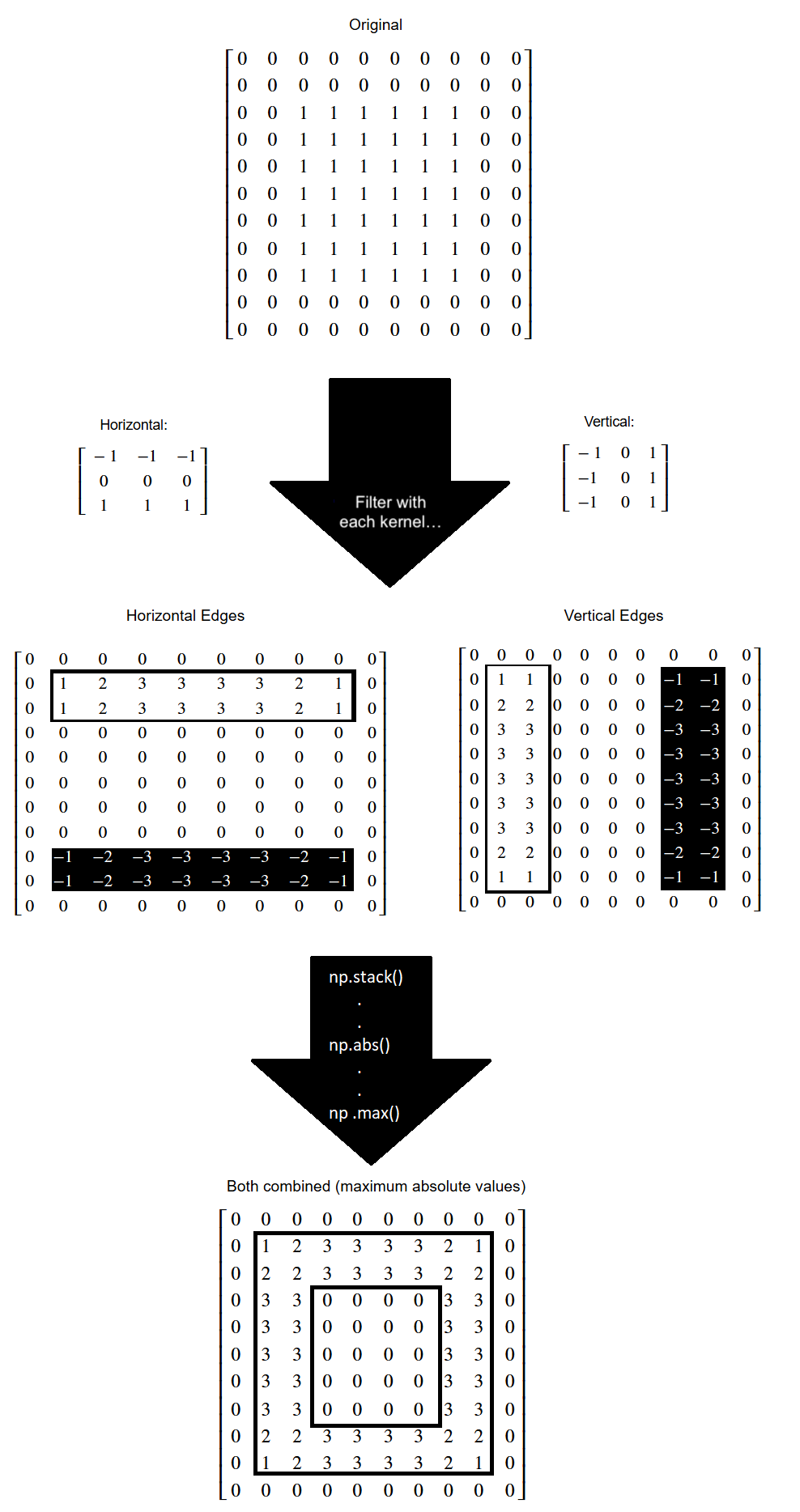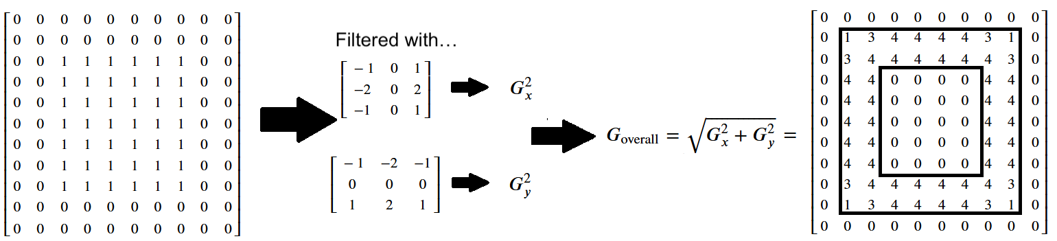We then applied the Euclidean distance formula to get the horizontal and vertical edges in one image: