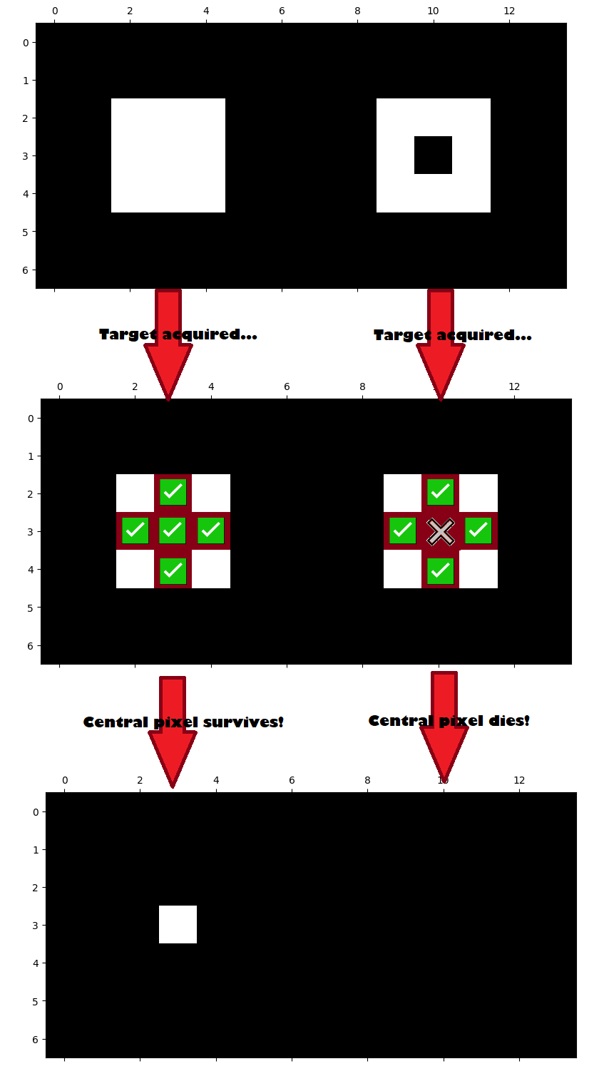 Therefore, morphology uses filters and crafted footprints to allow us to tune our filtering to the shape (…or, well, morphology) of features within the image.